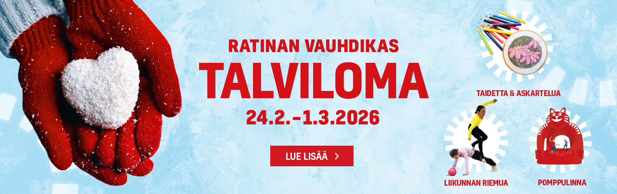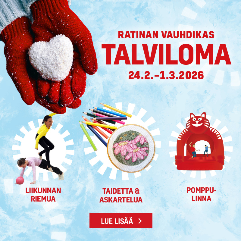 Tervetuloa Ratinaan viettämään vauhdikasta talvilomaa. Ratinassa on ohjelmaa tiistaista lauantaihin 25.2.-1.3. Ohjelmassa on taidetta & kulttuuria sekä liikunnallista tekemistä niin... Lue lisää