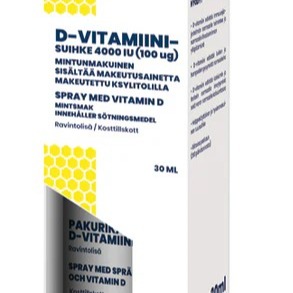 Nordaid D-vitamiinisuihke turvaa päivittäisen D-vitamiinin tarpeen tehokkaasti imeytymällä suoraan suun limakalvoilta - ota vastustuskykysi ja luuston tueksi. 200 päiväannosta D-vitamiinia yhdessä pullossa.