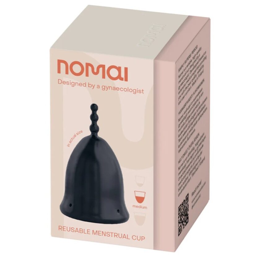 Musta Nomai-kuukuppi medium flow sopii normaaliin vuotoon - suomalaisen gynekologin suunnittelema kuukuppi on luotettava, huoleton, huomaamaton ja todella mukava kuukautissuoja.