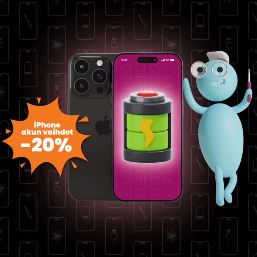 Akun vaihdot kaikkiin iPhone-malleihin nyt -20%! Astu iTapsalle sisään ja pidennä laitteesi käyttöikää! Kaikissa akun vaihdoissa vuoden takuu. Voit ostaa huollon myös verkosta ja vaihtaa akun 12 kuukauden sisällä missä tahansa liikkeessämme.