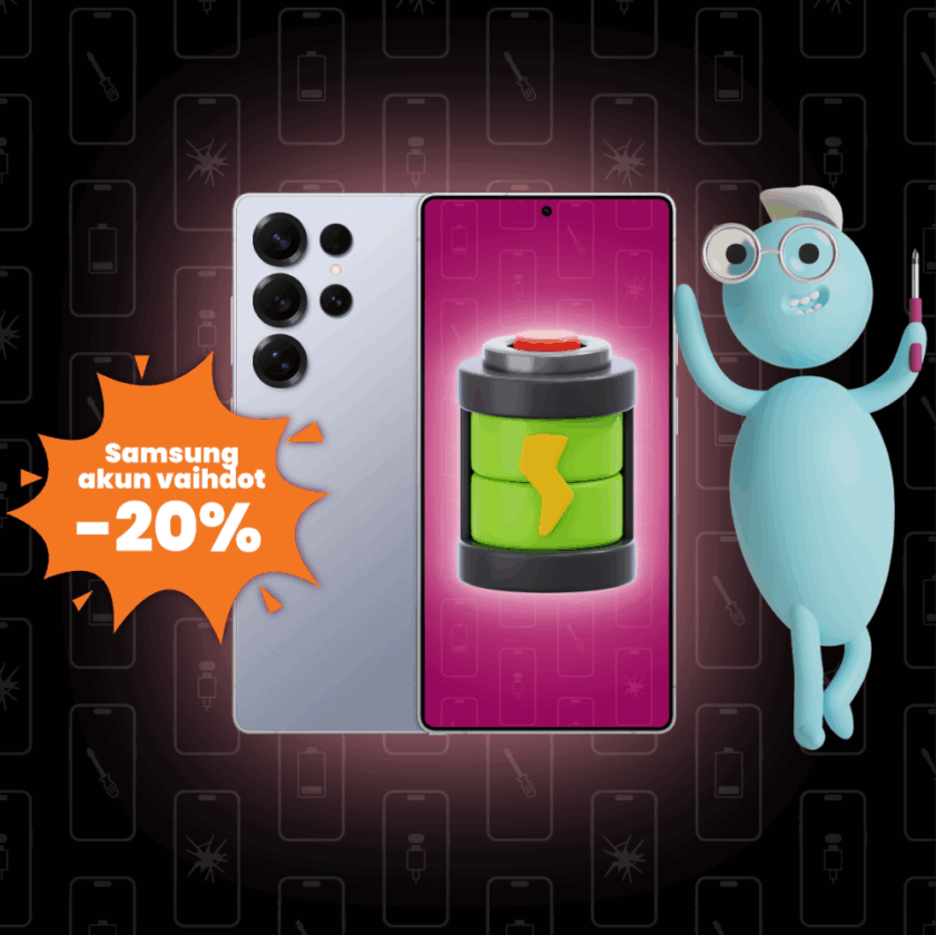 Akun vaihdot kaikkiin Samsung-malleihin nyt -20%! Astu iTapsalle sisään ja pidennä laitteesi käyttöikää! Kaikissa akun vaihdoissa vuoden takuu. Voit ostaa huollon myös verkosta ja vaihtaa akun 12 kuukauden sisällä missä tahansa liikkeessämme.