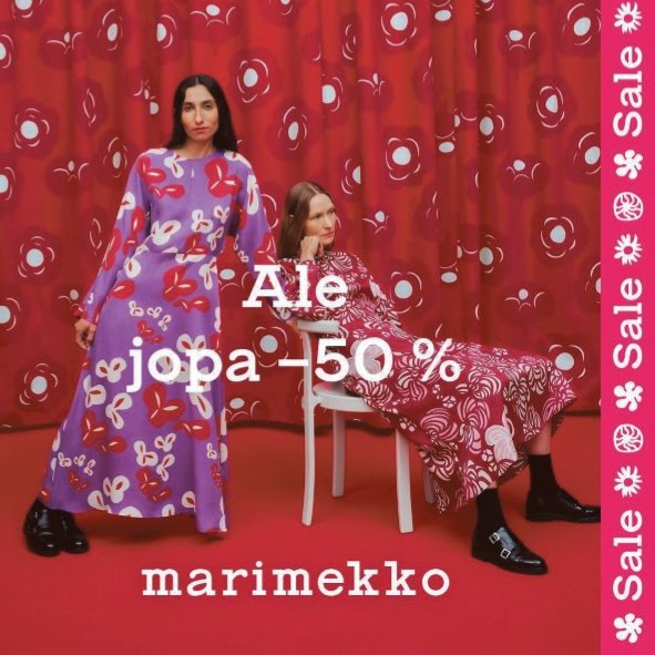 Nyt mahtava valikoima kauden muotia jopa –50 % ja kodintuotteita jopa –40 %. Myymälät ja marimekko.com.