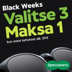 Nyt jos koskaan kannattaa hankkia silmälaseja eri tarpeisiin, sillä kaikkien aikojen tarjouksemme on täällä! Saat kolmet silmälasit yksien hinnalla alkaen vain 59 € ja näöntarkastuksen ilmaiseksi!