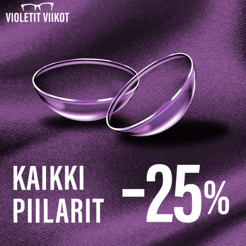 Violettien viikkojen kunniaksi kaikki piilolinssit 25 prosentin alennuksella.Tervetuloa -myymälä täynnä huipputarjouksia!
