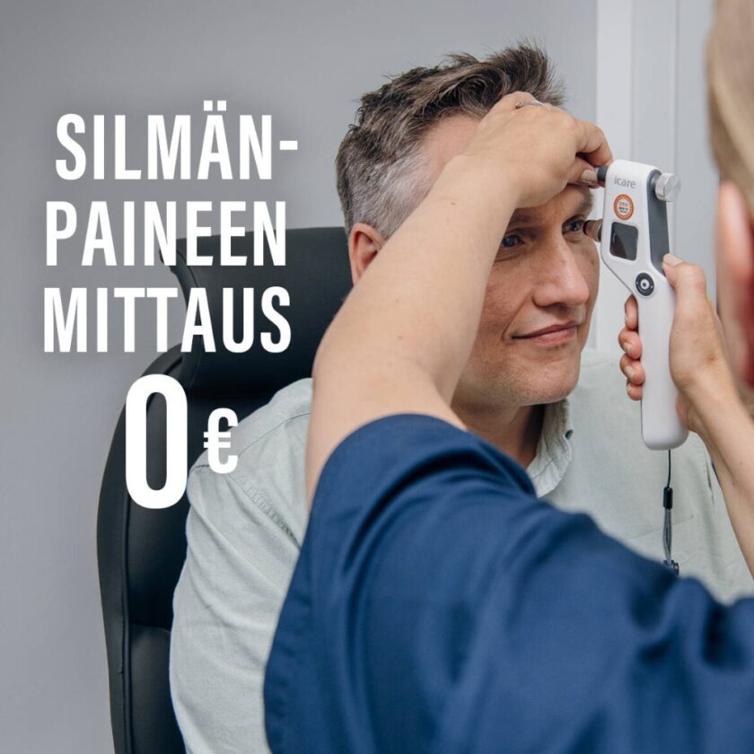 Pysäytä glaukooma ennen kuin huomaat sen! Selvitä glaukooman eli silmänpainetaudin mahdollisuus nopealla ja kivuttomalla silmänpaineen mittauksella – se saattaa pelastaa näkösi. Mittaukseen pääset ilman ajanvarausta, ja juuri nyt saat sen maksutta!