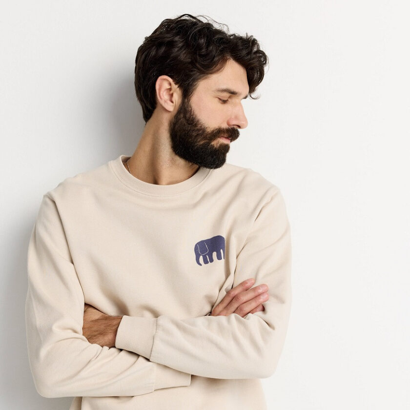 Laadukas ja arkea kestävä beige Elefantti-collegepusero tuo mukavuutta pukeutumiseen. Mukavan pehmeästä luomupuuvillasta valmistetun puseron malli on suora ja rento – eli ei kiristä tai purista!