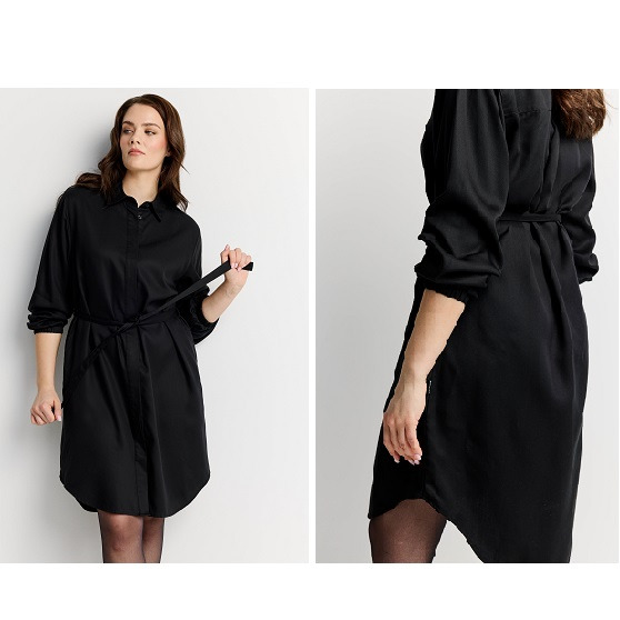 Satiinimainen lyocell-materiaali hengittää ja laskeutuu kauniisti, minkä ansiosta se on suoranainen huippumateriaali. Voit vyön avulla säätää ilmettä juuri tilanteeseen ja asukokonaisuuteen sopivaksi – paitamekosta saatkin monipuolisen luottovaatteen