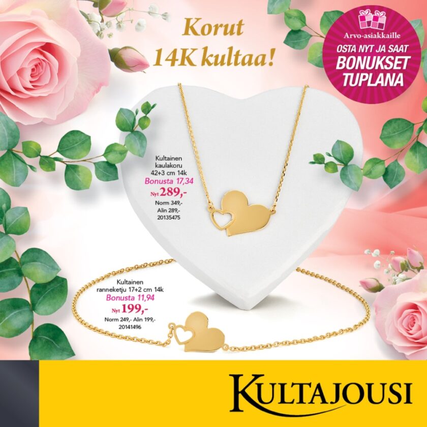 Helmikuu on rakkauden kuukausi! Yllätä tärkeä ihminen tai hemmottele itseäsi ajattomalla lahjalla, joka säihkyy vielä vuosienkin päästä. Ja muistathan: Arvo-asiakkaana saat tällä viikolla bonukset tuplana – eli 6 % kaikista ostoksista!