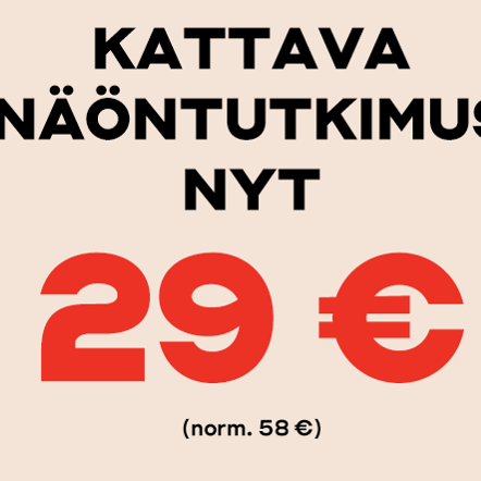 Nyt saat Instrun Kattavan Näöntutkimuksen 29 € kampanjahintaan (norm. 58 €). Kattava näöntutkimus sisältää optikon näöntarkastuksen lisäksi silmänpohjakuvauksen.