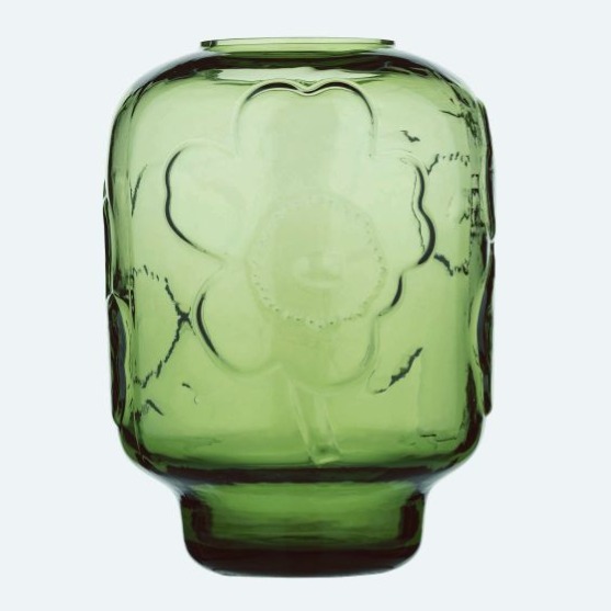 Unikko lasimaljakko, kaksi väriä: vihreä ja kirkas. Hinta jäsenille 119,25 (normaalihinta 159,-) Etu on voimassa Marimekon Ystävät -asiakasohjelman jäsenille 22.2 asti.