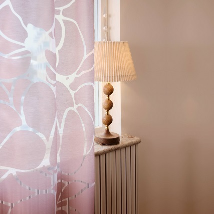 Vallila klassikko-kuosi kevyessä valoverhossa. Verhon mukana tulee lyhennysnauha, jolla verhon voi lyhentää helposti silittämällä ilman ompelua.