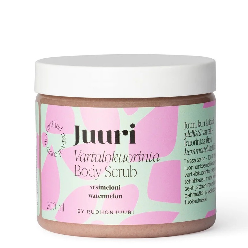 Juuri, kun kaipasit ylellistä vartalokuorintaa ihosi hemmotteluhetkiin. Juuri Vartalokuorinta saa aikaan silkkisen pehmeän ihon ja ihastuttaa täyteläisellä koostumuksellaan sekä raikkaan vesimelonin tuoksullaan - sopii normaalille ja kuivalle iholle.