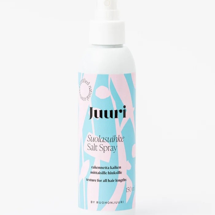 Juuri, kun kaipasit rakennetta ja tuuheutta hiuksillesi. Juuri Suolasuihke tekee hiuksista laineikkaat ja tuuhean oloiset antaen samalla rakennetta hiuksiin. 150 ml.