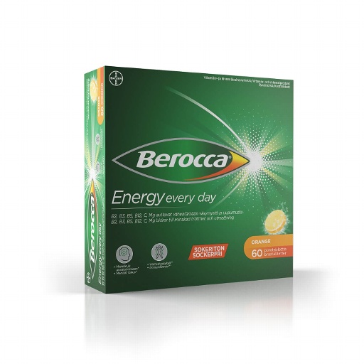 Berocca Energy Orange 60 poretablettia. Jos tarvitset virtaa koko päiväksi, Berocca Energy antaa sitä! Berocca Energy -valmiste sisältää yhdistelmän B- ja C-vitamiineja sekä kivennäisaineita magnesiumia ja sinkkiä.