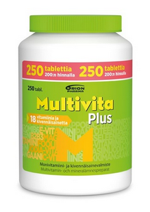 Monivitamiini- ja hivenainevalmiste aikuisille. Sisältää mm. A-vitamiinia, foolihappoa ja magnesiumia. 200 tabl. Nyt kampanjapakkauksessa 50 tabl. kaupan päälle.