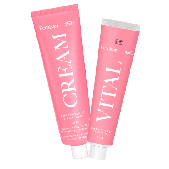 Tutkittu apteekkisarja naisen intiimialueen hyvinvointiin. Tehokkaat, hellävaraiset, väriaineettomat, tuoksuttomat sekä hormonittomat tuotteet sopivat kaikille ja kaiken ikäisille naisille. Vital emätingeeli 36g tai Cream emätinvoide 50g.
