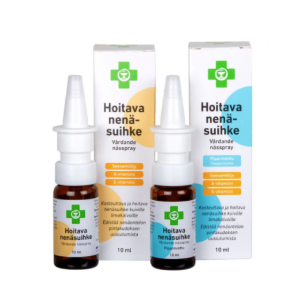 Kosteuttaa ja hoitaa nenän kuivia limakalvoja sekä edistää nenäontelon pintakudoksen uusiutumista. Piparmintun tuoksulla tai ilman, 10 ml.