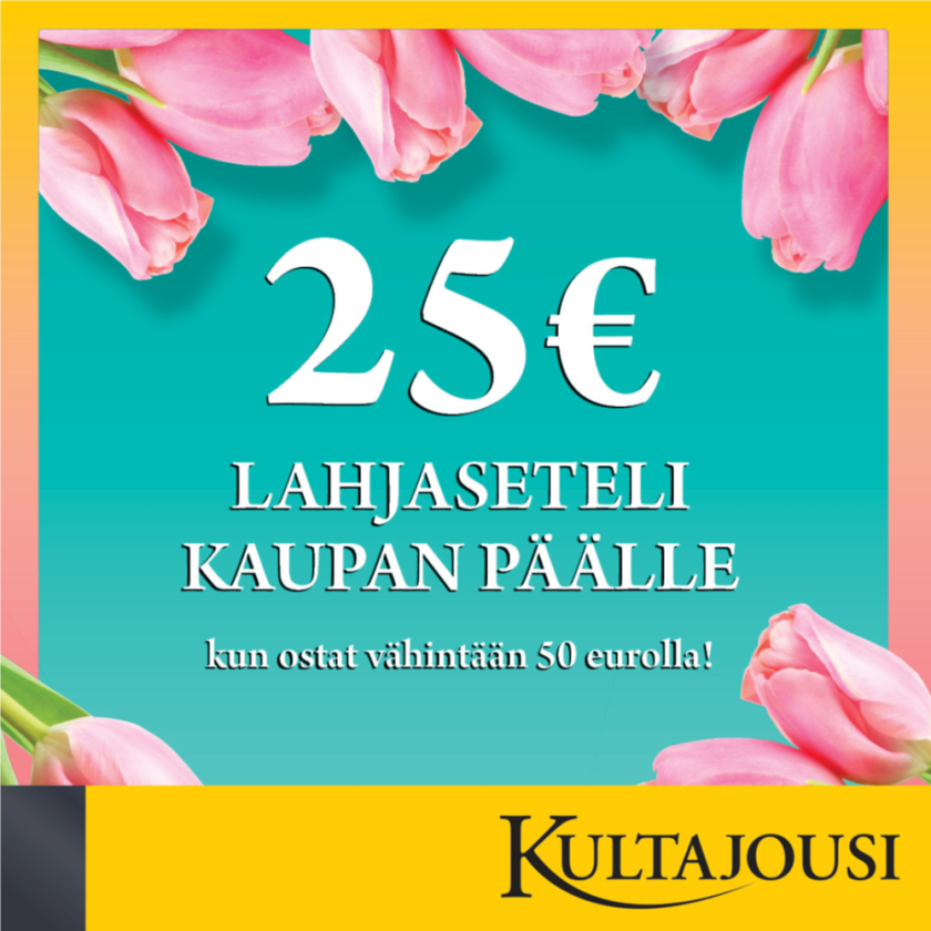 Kun ostoksesi loppusumma ylittää 50€, saat 25€ lahjasetelin käytettäväksi seuraavaan ostokseesi. Lahjaseteli on voimassa 31.12.2026 asti. Kampanja voimassa 19.4.2026 asti.