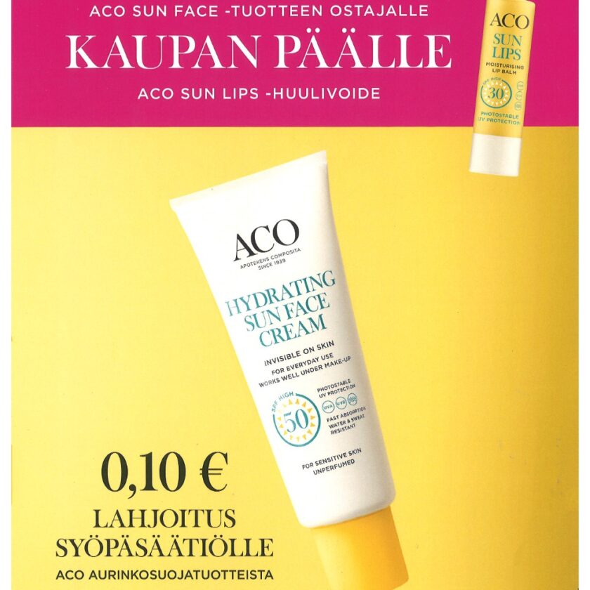 Ostaessasi Aco Sun Face tuotteen saat kaupan päälle Aco Sun Lips balmin!
