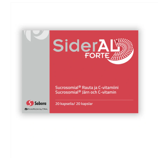 Sukrosomiaalista (Sucrosomial®) rautaa ja C-vitamiinia sisältävä ravintolisä. Valitse SiderAL® FORTE kapselit, kun raudan saanti ruokavaliosta on vähäistä tai elimistön raudan tarve on lisääntynyt.
