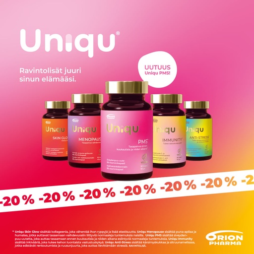 Uniqu sarja nyt -20 %! Uniqu sarjasta löydät tuotteita eri elämänvaiheisiin tukemaan hyvinvointia ja terveyttä.